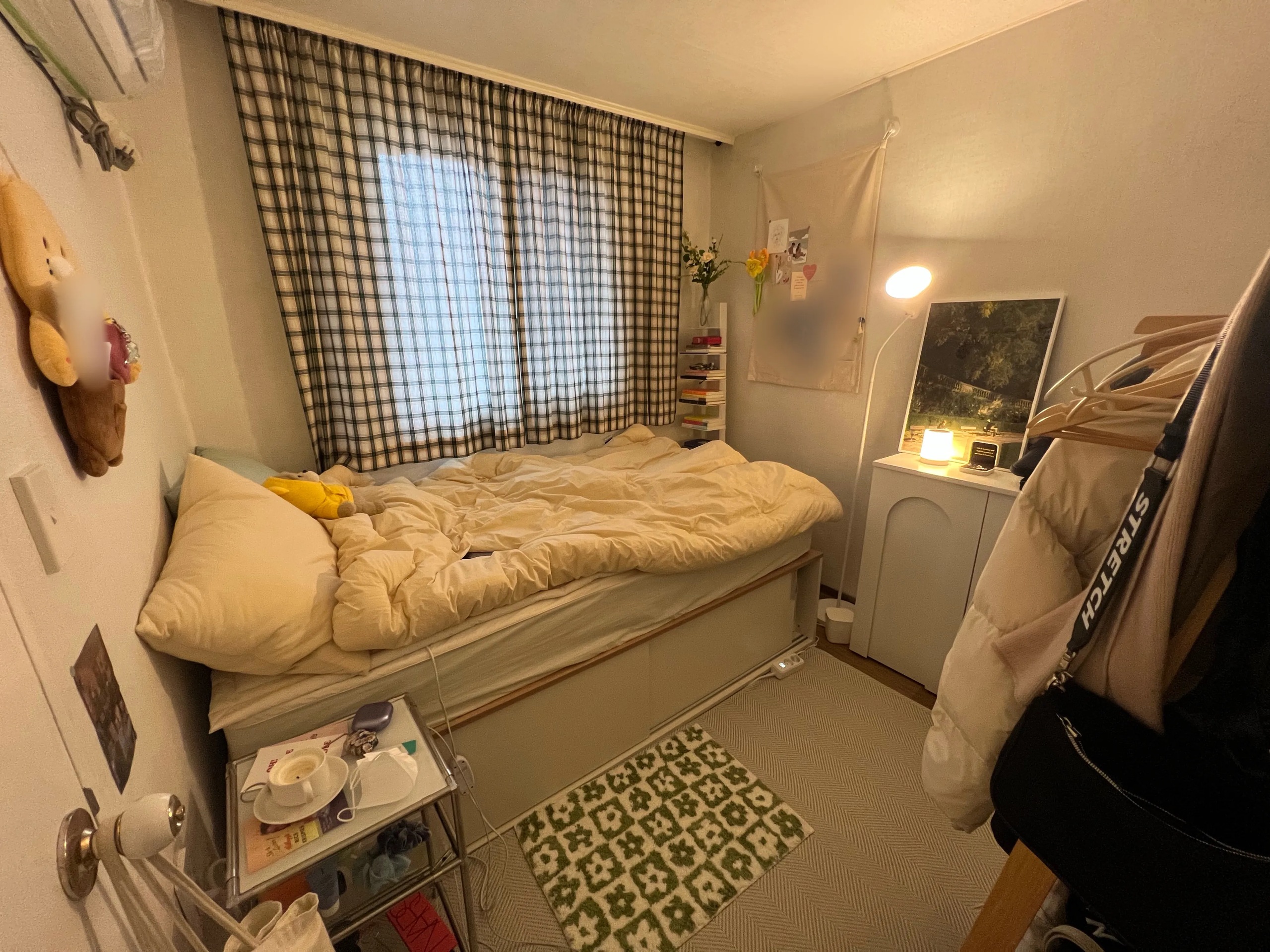 옷걸이와 서랍의 위치를 바꾸고 벽에 붙어 있던 변우석 사진을 모두 없앴습니다.